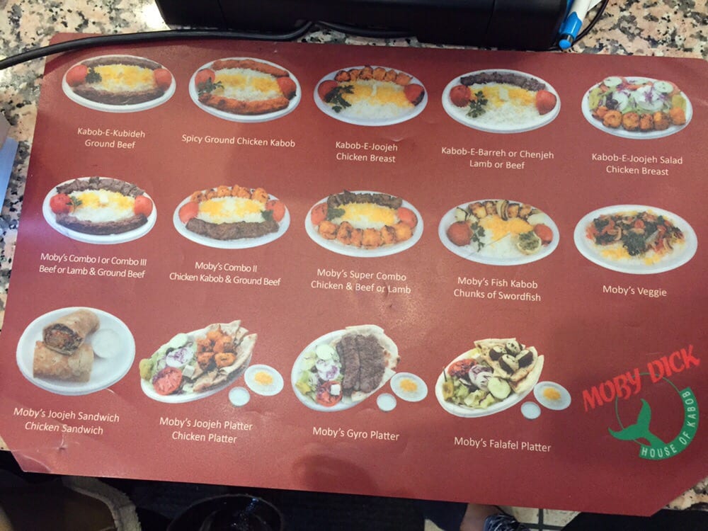 Introducing the menu at Moby Dick House of Kabob, a Halal restaurant located at 1300 Connecticut Ave NW Washington, DC. They offer a variety of delicious entrees such as Barreh Kabob, Chenjeh Kabob, and Moby's Combo options. Don't miss out on their appetizers including Dolmeh, Falafel, and Hummus. For a refreshing salad, check out their Mediterranean Salad or Spinach Salad. With vegan and vegetarian options available, this restaurant is perfect for any dietary preference. The casual setting with waiter service makes it a great spot for lunch or dinner. The diverse menu, including kebabs, salads, and appetizers, ensures there is something for everyone to enjoy. Make sure to try their Moby's Gyro or Ground Lamb Kabob for a flavorful taste of Middle Eastern cuisine.